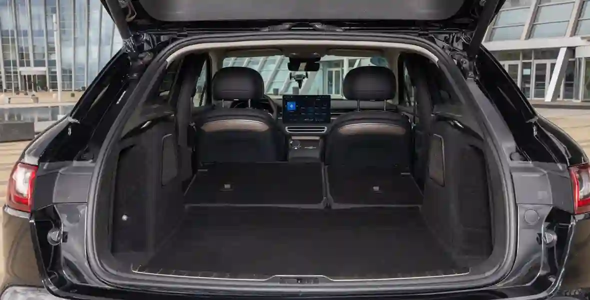 Формой кузова EVOLUTE i‑JET напоминает о Porsche Macan — особенно похожа задняя часть, где с немецким спортивным кроссовером его роднят не только светодиодные фонари во всю ширину, но и расположенная на креплении стеклоочистителя кнопка открывания двери багажника.