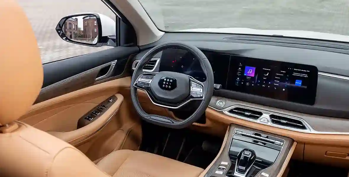 Рулевое управление – предсказуемое, что хорошо. Подвеска EVOLUTE i‑SPACE тоже понравилась: она прекрасно себя ведет на ровном шоссе и городских улицах, практически не допускает кренов в поворотах. Но вот плохие дороги она не любит. Да и не самый большой клиренс 180 мм (в сочетании с длинной базой) недвусмысленно говорит, что перед вами – минивэн, может быть – кроссовер (городской), но отнюдь не внедорожник! Хотя проселочной дорогой его, конечно, не испугаешь. Съезжать с асфальта можно, но… весьма осторожно.